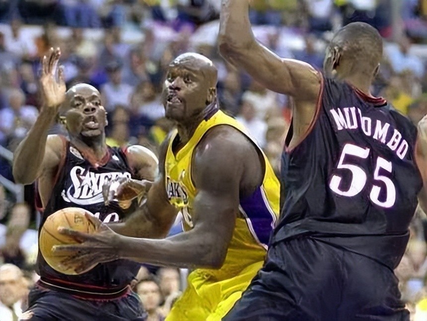 那个赛季的艾佛森就像最锋利的矛,而穆托姆博则是那柄最坚实的盾,攻守兼备的76人以东部第一的战绩向总冠军发起了挑战,在经过季后赛的重重阻碍后76人顺利杀进总决赛,但可惜天外有天,人外有人,那年的湖人已经处于一种“神挡杀神佛挡杀佛”的无敌姿态,虽然在外线对决中,艾佛森对科比略占优势,但是在内线,年轻力壮的奥尼尔将已经快要35岁的穆托姆博彻底征服。最终76人以1:4不敌湖人,遗憾落败,穆托姆博也与总冠军奖杯擦肩而过。