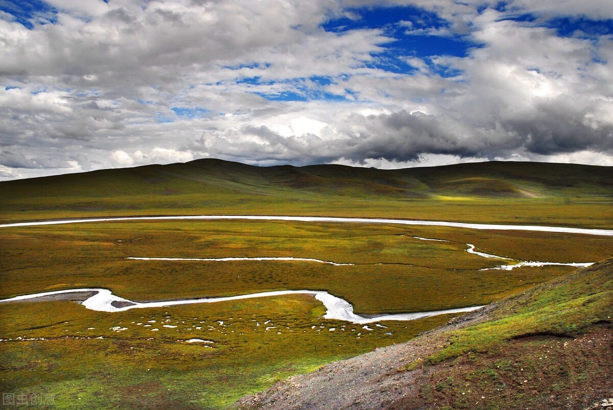 三江源的画面感稍微弱点,这里的河流喜欢变换形状,一会是辫状河,一会是蛇曲,大家看出来了,这里水特别多,因此这里除了河流,还有很多湖泊、湿地。
