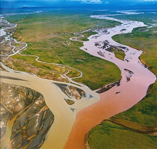 沱沱河与当曲相貌迥异,在颜色上大不相同,沱沱河因为含有红色的砂石显得通红,看上去不能相融的两条河竟然合体了。