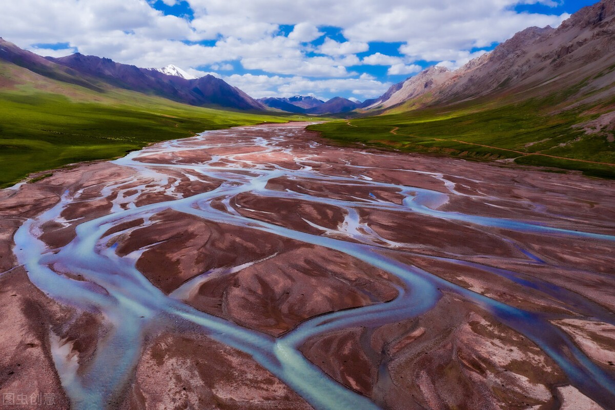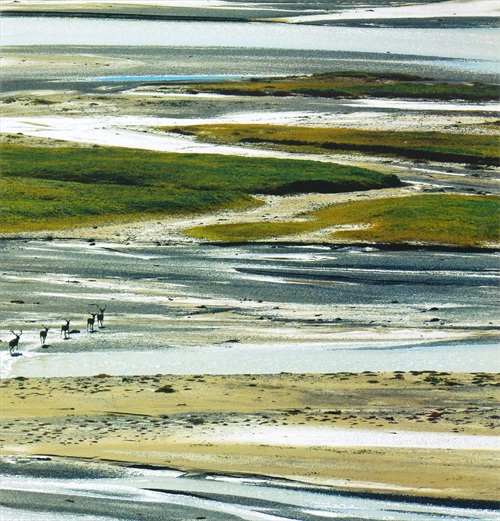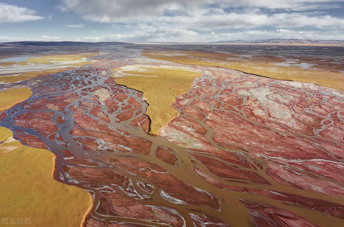 在宽阔的平原上,通天河不受束缚地流淌着,队伍看上去非常散漫,河水中的泥沙偷懒停下来,堆出了一座座沙洲,于是水流纷纷绕开沙洲走,形成了壮观的辫状河流。