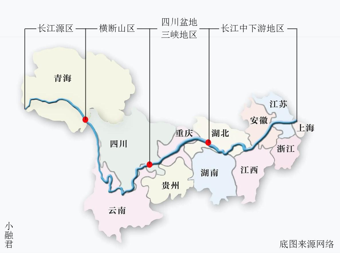 如图所示,我们可以把长江分为4个部分。
