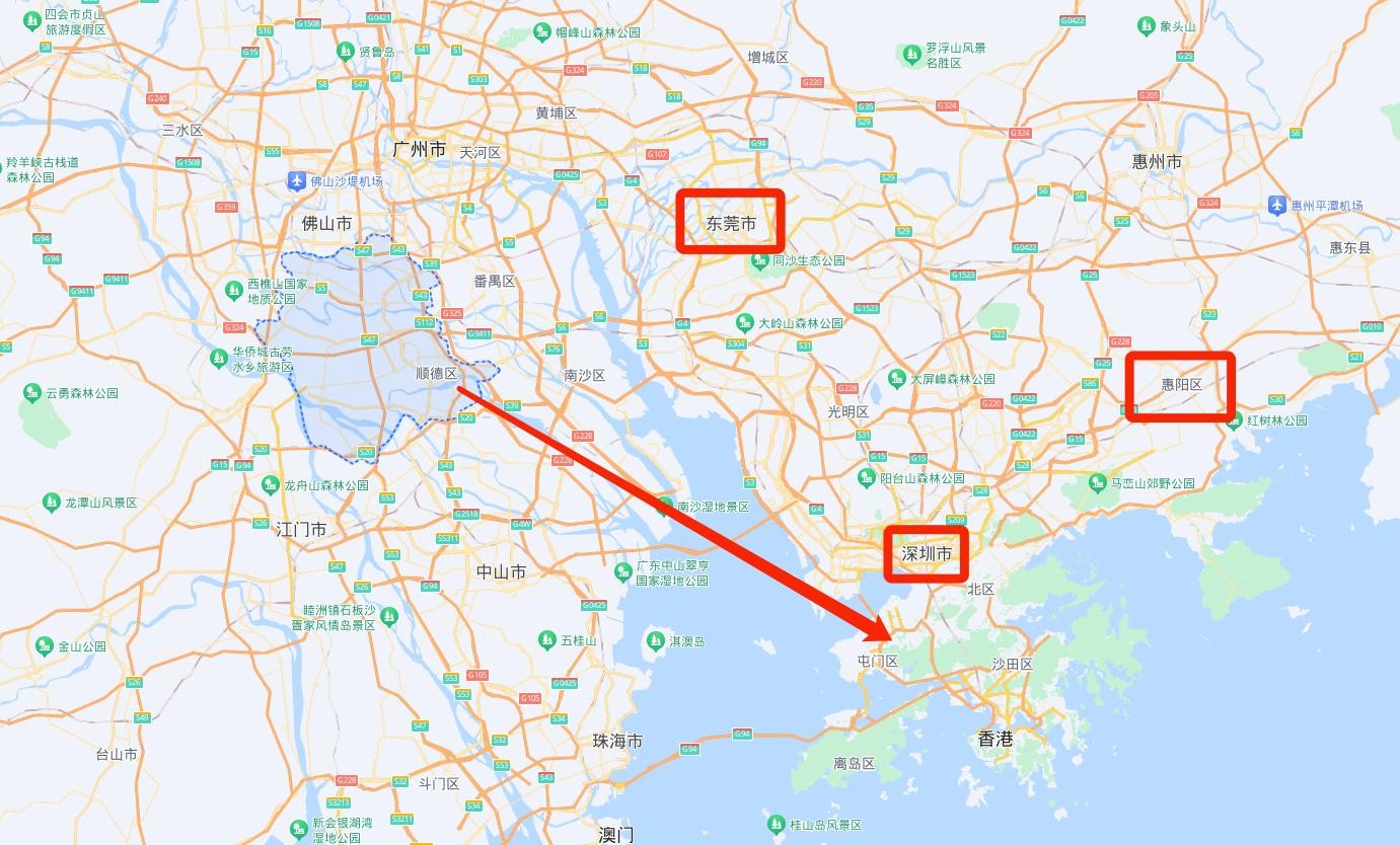 地处珠江西侧的顺德在区位上并不占优势,与珠江东侧的东莞、深圳、惠阳根本没法比