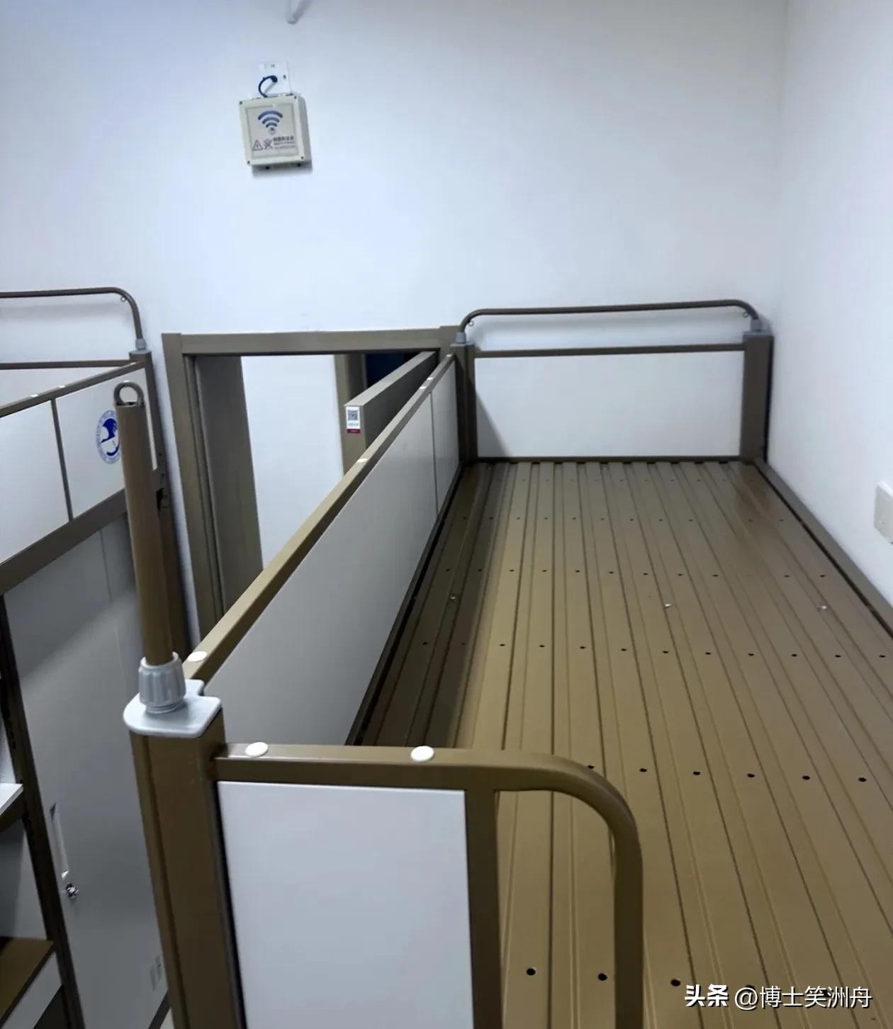 为了防止学生睡觉翻身掉下床,床两边安装有挡板。宿舍全部有WiFi信号,可以无线联网。