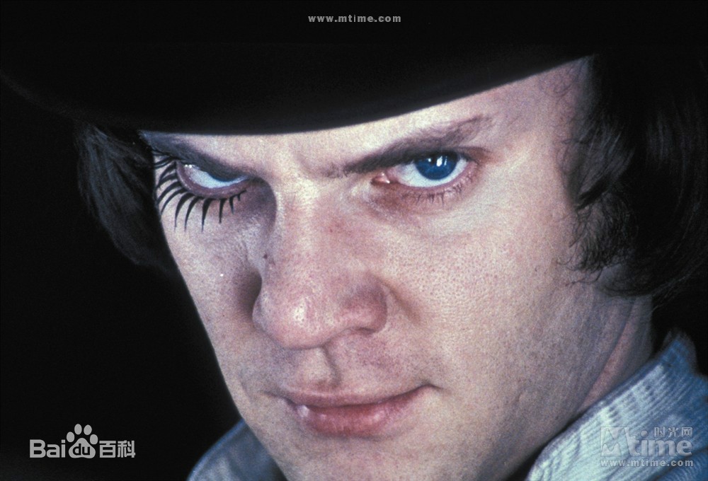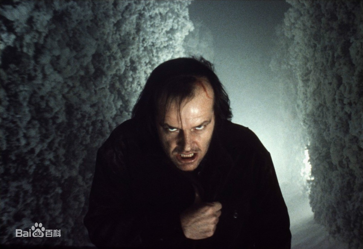 库布里克凝视搭配反转的剧情、画风突变的音响效果,一同将电影恐怖气氛推向高潮。