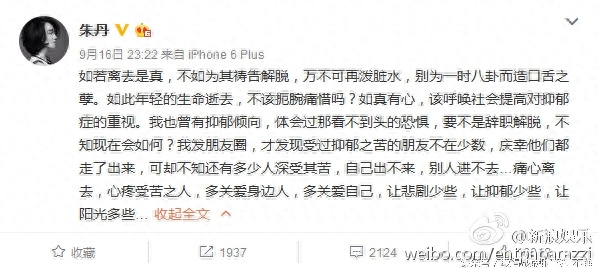 各路明星纷纷发文称:不敢相信。我们在这也衷心祝愿逝者安息,家人坚强,也希望每个人善待自己的言行,给逝者一片安静的乐土,也不要给其父母朋友莫须有的压力。