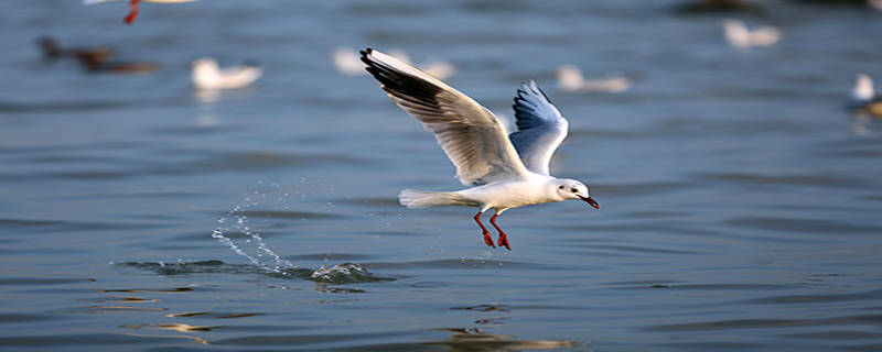 海鸥的生活特点是:海鸥的繁殖期主要栖息于北极苔原、森林苔原、荒漠、草地的河流、湖泊、水塘和沼泽中,冬季主要栖息于海岸、河口和港湾。海鸥会成对或成小群活动,或在空中飞翔;在海边和海港,成群的漂浮在水面上,游泳和觅食;海鸥以海滨小鱼、昆虫、软体动物、甲壳类以及耕地里的蠕虫和蛴螬为食。