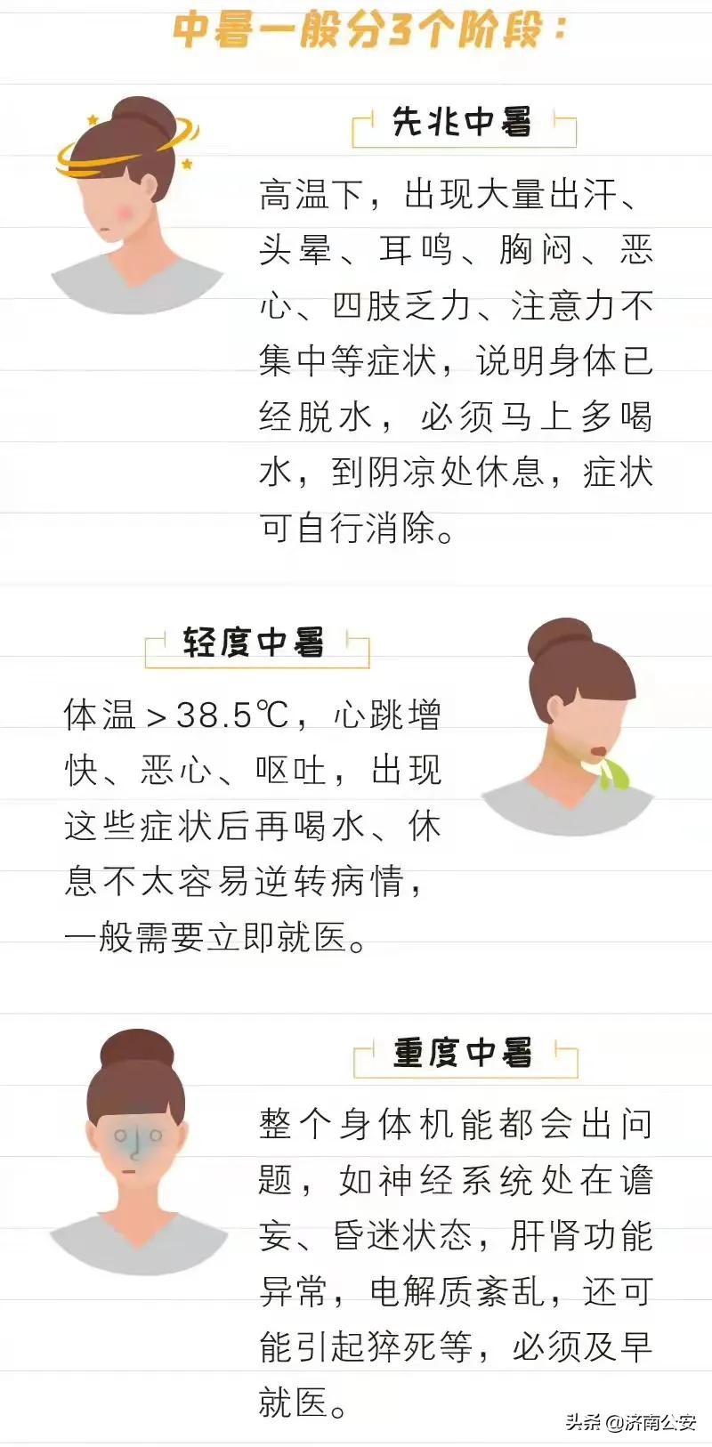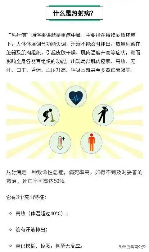 热射病不是突然出现,而是逐渐加重。如果出现轻度中暑,比如大量出汗、头晕无力、胸闷气短、恶心心慌等症状时,一定要重视并及时处理,防止情况恶化。
