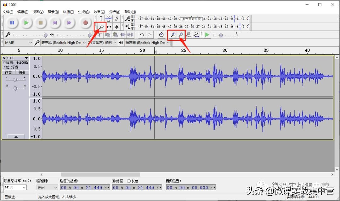 缩放工具主要用于对声音时间点精确定位,操作有两种: