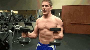 然后进行弯举,将哑铃向你的肩部方向弯举移动,动作到最顶点,保持顶峰收缩1-2秒,然后缓慢下降哑铃,下降的速度慢一些,下降的顶点可以是完全伸直手臂,也可以下降至小臂与大臂呈90度。