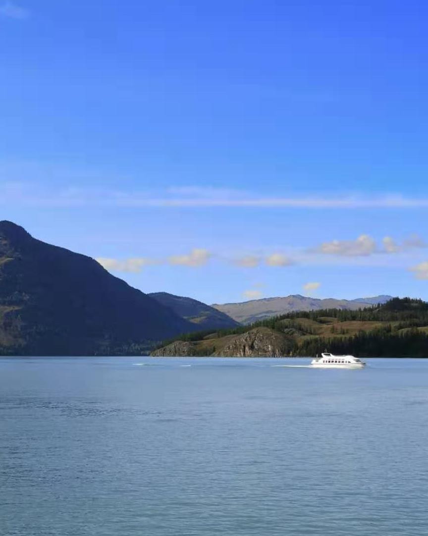 这次终于有机会亲身来到这神秘的湖泊,不知道有多少人也是被水怪传说吸引而来,最后却被湖泊本身的美丽所震撼。这一天的天气格外晴朗,沿着喀纳斯河一路风景如画,原始的西伯利亚落叶松和白桦林交相辉映,