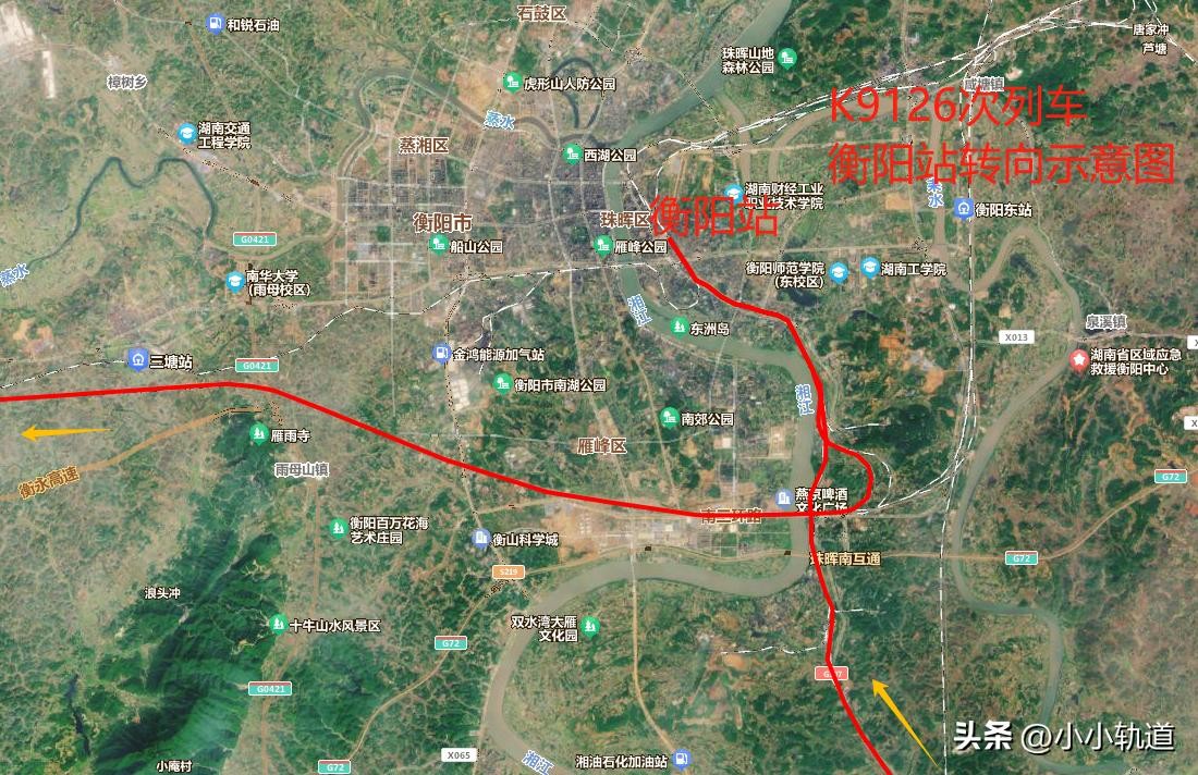 K9126次列车广州至永州,需要在衡阳站转向