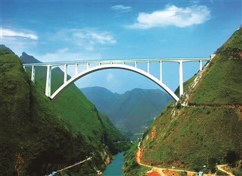 2009年2月,我国东西向线路里程最长的高铁——沪昆高铁开工建设。中铁广州局参建了沪昆高铁北盘江特大桥的建设,大桥是目前已建成的世界第一大跨度上承式钢筋混凝土拱桥,全长721.25米,主跨445米,桥面至江面300米。大桥融汇中拱桥、悬索桥、连续梁桥等特点,集拱座大体积混凝土、薄壁空心高墩、大跨度的缆索吊机、高空钢管拱架设等先进施工技术于一体,是一座高科技的现代化桥梁,实现了“五大突破”,代表着世界钢筋混凝土拱桥建造的最高水平。该桥于2016年荣获中华全国总工会火车头奖杯,2018年荣获国家“金桥奖”、国家铁路局2017-2018年度铁路优质工程一等奖,2019年获2018-2019年度国家优质工程奖。