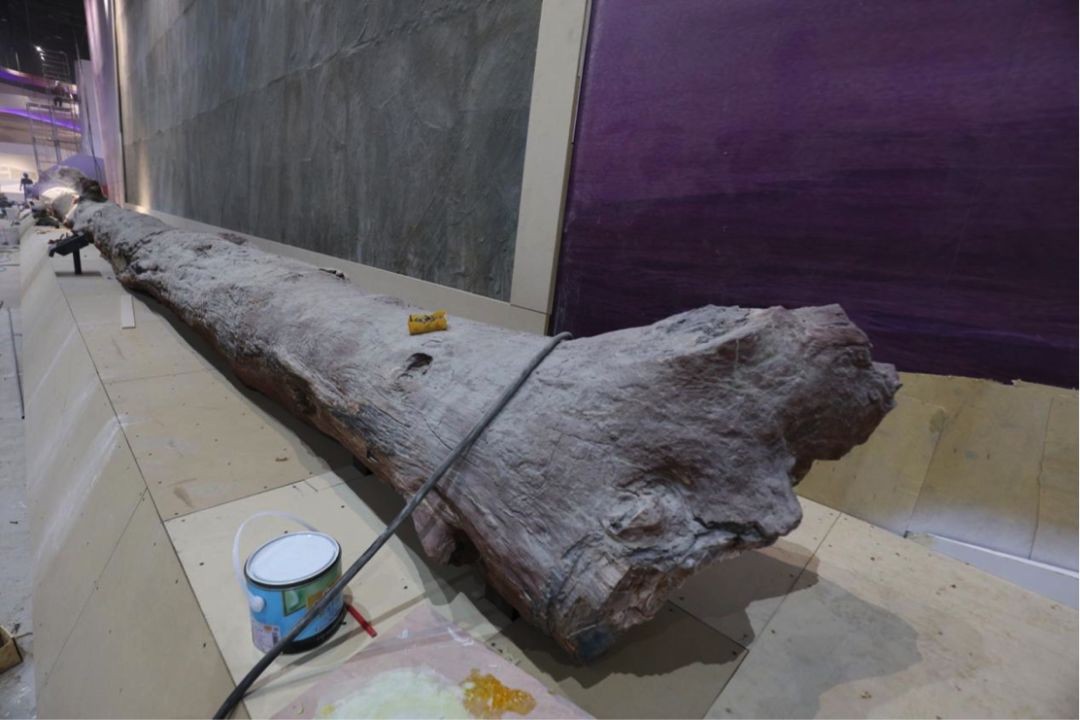 武汉自然博物馆·贝林大河生命馆的硅化木出土于新疆奇台县,为侏罗纪时期的高大乔木石化而成,树形保存完好,木质结构清晰,总长37米左右,根部最大直径2.7米,极为壮观,是中国博物馆展出的最长的硅化木。