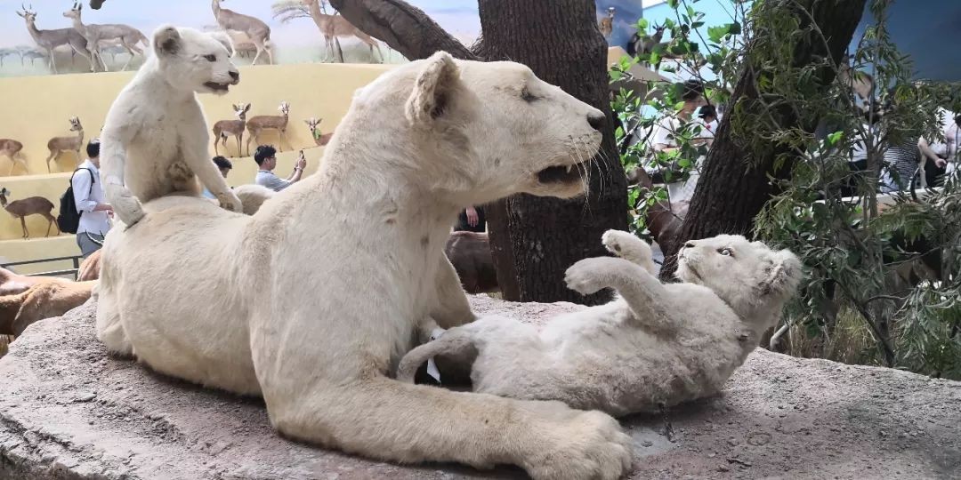 武汉自然博物馆·贝林大河生命馆的白狮一家在尼罗河展出。