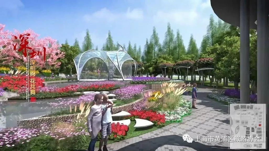 上海园:占地面积5000平方米,主题“源梦园”,寓意为梦的起源,花艺圆梦。