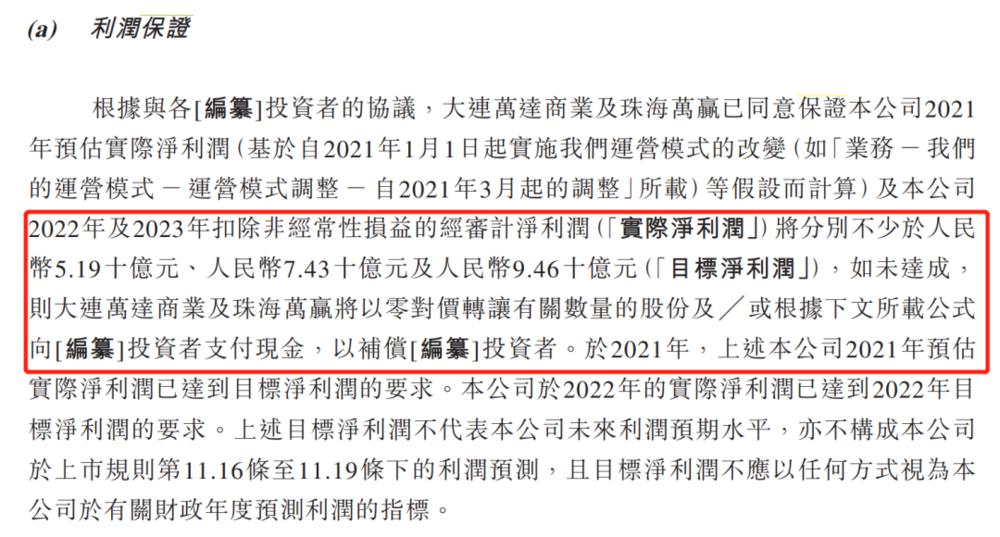 当时的 " 对赌协议 " 中还包括业绩对赌,若未达成,万达商管也需要支付股权或现金赔偿