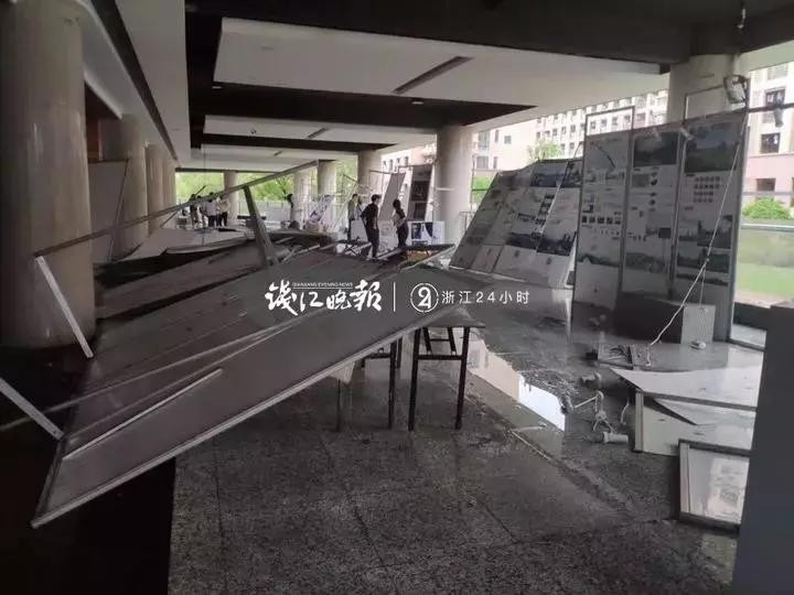 记者了解到,在温州市职业技术学院学校内,今天下午正在进行招聘会,但是随着一阵狂风暴雨洗礼,多个招聘会现场一片狼藉,学生们纷纷散到安全地带躲避冰雹天气。