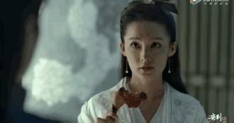 第二款就是李沁这个,看起来像是提线木偶一般的,从动图看得出来,当时李沁还在那里介绍自己的鸡腿,还笑得下巴变形了,当时还看呆了张若昀!