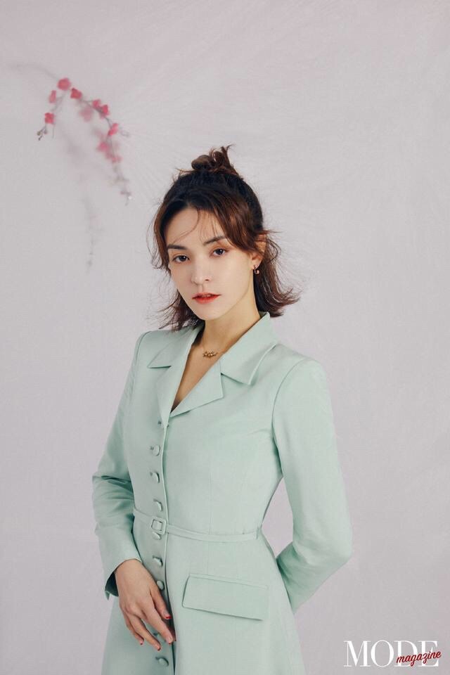 而这一款造型就没有把头发都扎起来了,看起来特别的温文淑雅再看看张榕容的穿搭,选择的是西装加半身裙的造型,先是一款翠绿色的西装,这种色号给人一种十分舒适的视觉效果,而且驾驭起来也是特别有难度的!