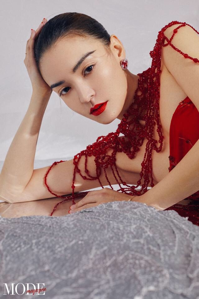 而这一款穿搭就比较吸睛了,一条红色的抹胸长裙,大红的颜色把张榕容的皮肤衬得十分的白,在领子上的设计更是诱人,流苏的设计看起来特别的有线条感呢~