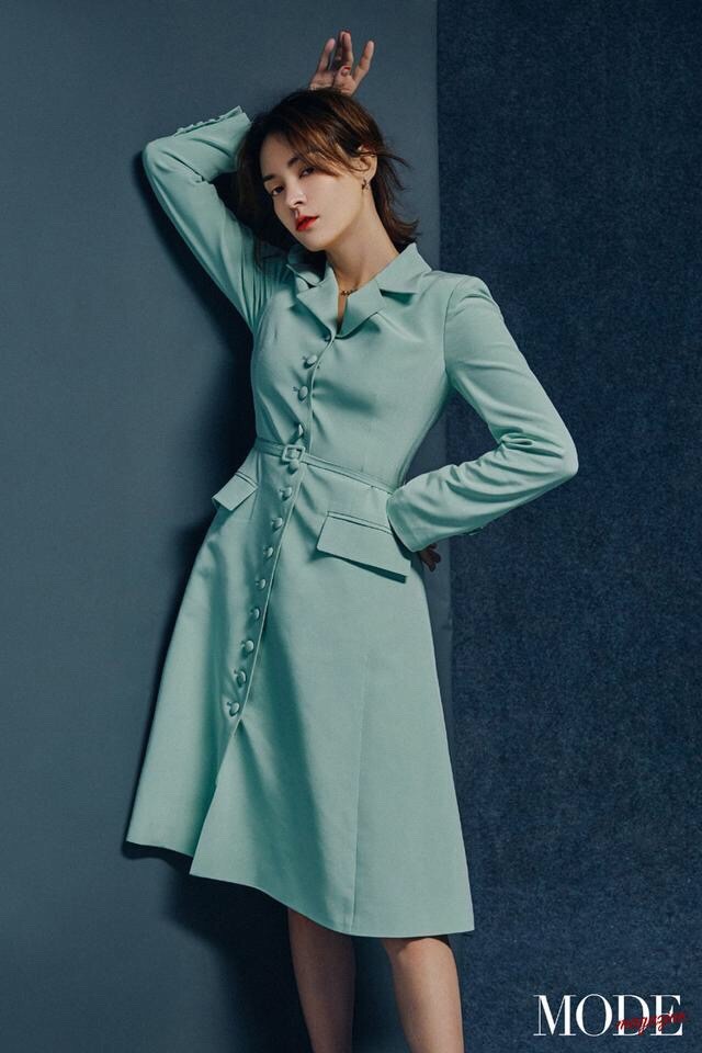 下身配上同色号的短裙,对于这种颜色的搭配还是比较我有难度的,还不如像张榕容一样,尝试同色号的搭配,简单又不容易出错!特别的淑女呢!