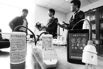 这种节电器真能省电吗?城管队特意请来了专业电工进行测试。“从表面看没有问题。”电工李师傅表示,将节电器插上后,果然电表走速慢了很多,但是没有一会儿,会议室的灯突然黑了,原来短路了。再次合闸后,李先生将电表拆开后没有发现问题,将节能器拆开后发现就是一个电阻,也没有问题,但是有的节电器里只连着一根线。