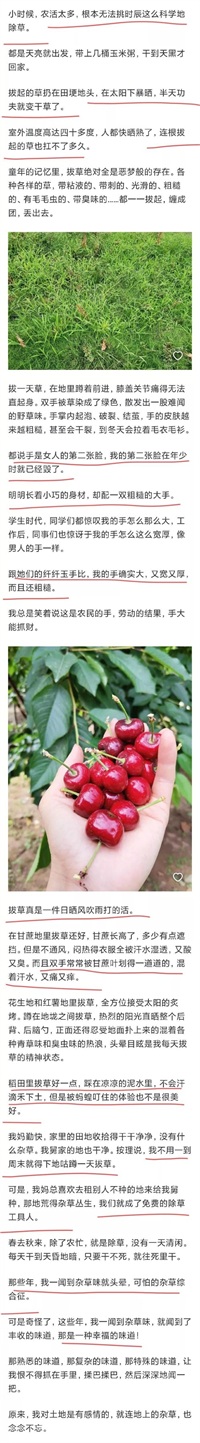 反正我是没见过30度的天气去地里拔草的,我们家那时候都早上两三点钟或者晚上4点半以后再去,中午去地里,阳光一晒水,跟一个没盖的桑拿室一样,待不住。