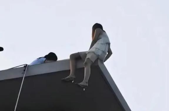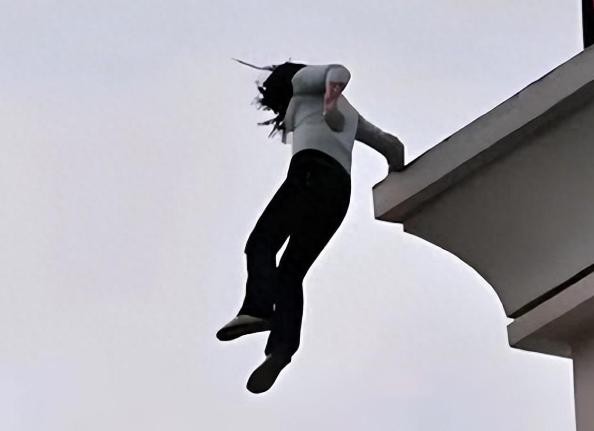就在人们还在劝说的时候,女孩突然纵身一跃。