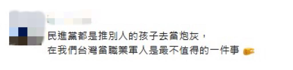 更有网友直指民进党," 民进党都是推别人的孩子去当炮灰,在台湾当军人是最不值得的一件事 "。