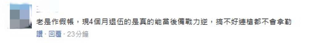 还有网友表示," 笑死人了 "" 纸上谈兵的评比 ""4 个月退伍的 …… 搞不好连枪都不会拿 "。