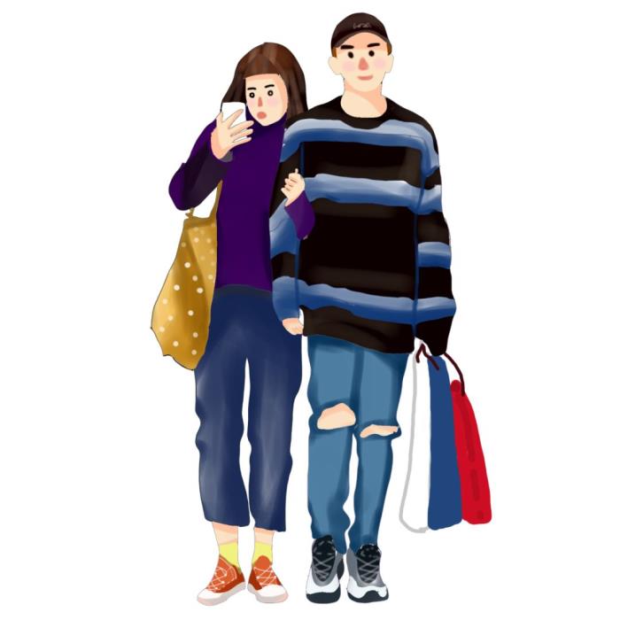 看着是两个人四只手逛街,其实四舍五入两只手。女朋友的手只用来试衣服,挑包包,我的手用来拎包拎饮料拎衣服抱各种毛绒娃娃……