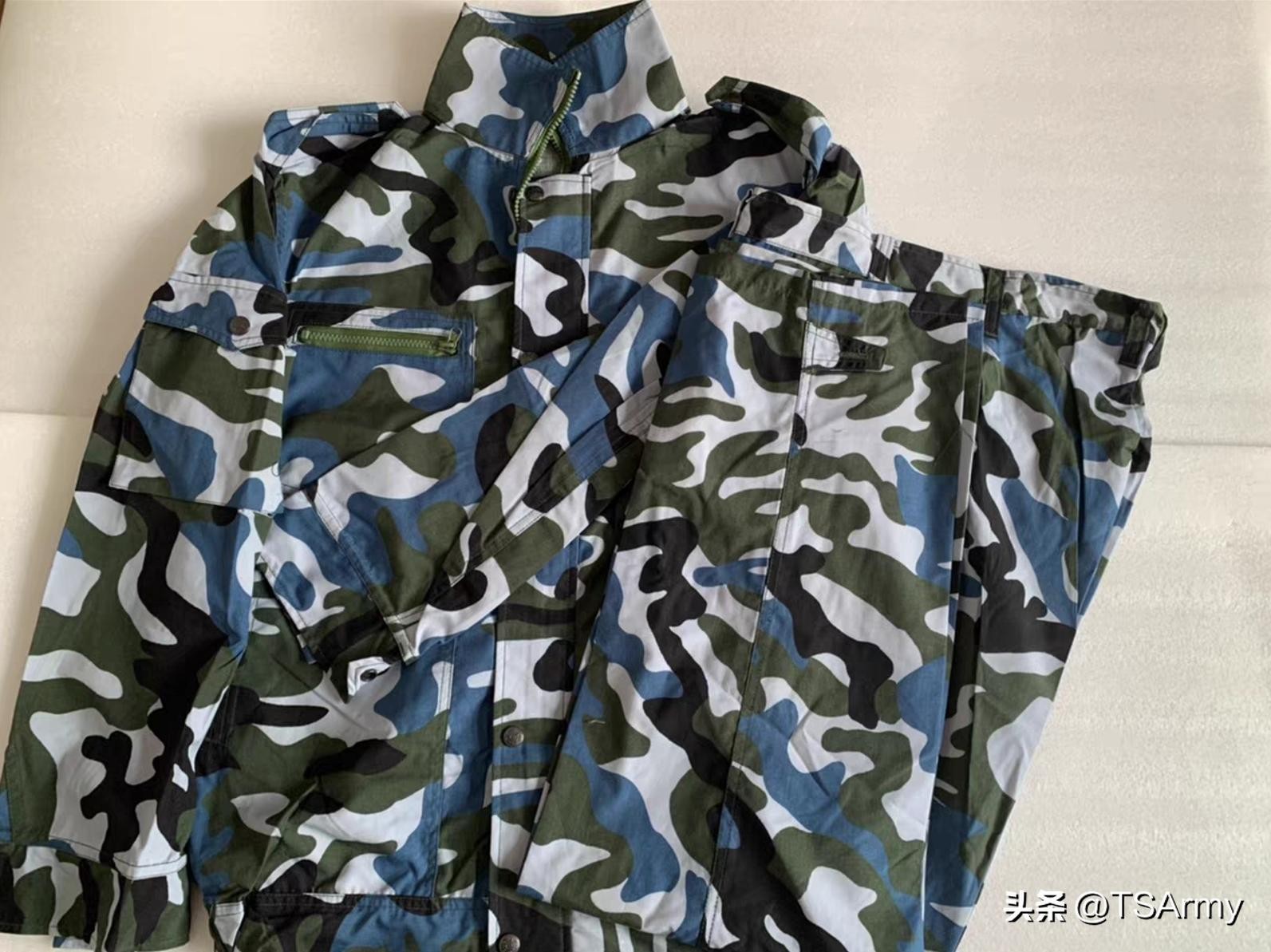 随同87式系列当中,还有一款海军常用的87式海洋迷彩作训服,整套由淡蓝色、白色、黑色和橄榄绿四种颜色组成,当时在我国海军陆战队中使用的最多,同样在九十年代以后向海外出口。