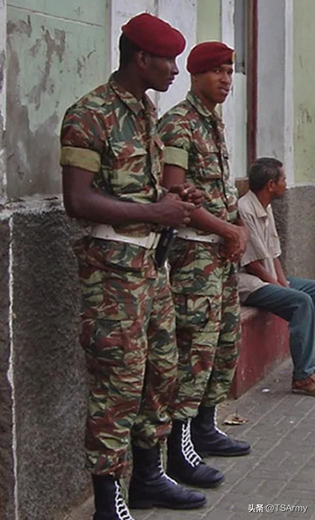 上图是几内亚武装部队,大约在2008年后期,也装备了中国仿制的蜥蜴迷彩服。