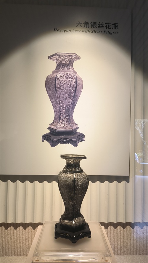 六角银丝花瓶