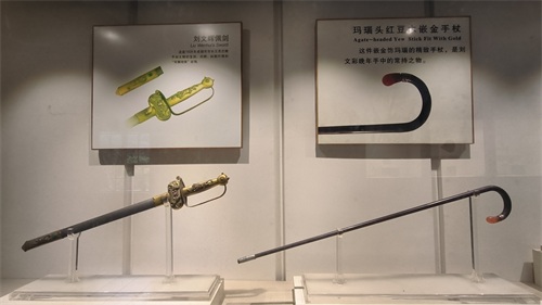 刘文辉佩剑和刘文彩玛瑙头红木嵌金手杖
