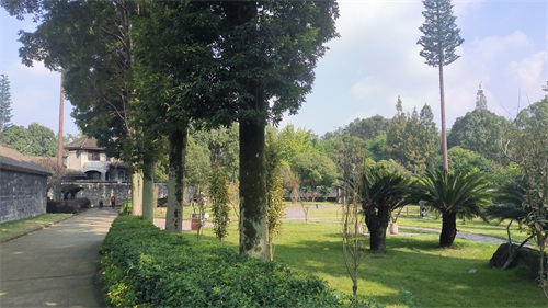 大花园占地宽广,有假山鱼池、草坪绿植