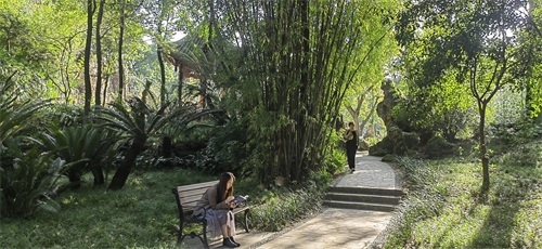 漫步百花潭公园,在幽径绿植中穿行,体会它文雅古朴之美。园中花鸟游鱼、梅柳溪岸、山石修篁、亭台楼阁、闻香寻芳,使人流连忘返。逛累了,在茶园绿树下,围桌而坐,追着阳光挪位,伴着鸟儿们的欢快的争吵,品茗玩牌,轻松愉悦。