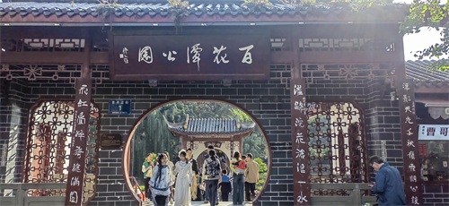 百花潭公园中的慧园占地约27亩,是依据巴金笔下《家》仿建的清末民初的川西民宅,园中陈列展出有巴金的手稿、图片等实物。