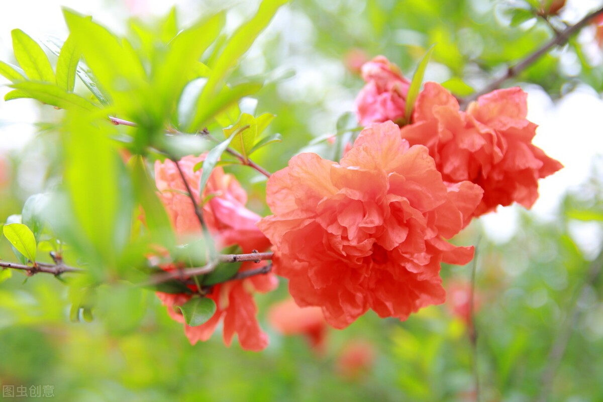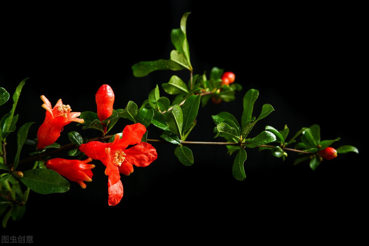 石榴在我国的种植历史也很悠久,虽然不是本土植物,是在汉代时由西域传入,但是这种又能赏花又能结果的果树很对古人“华而有实”的看待植物的胃口。特别是在花开时,满树的火红色,堪称是世上最鲜艳的颜色之一,也难怪古人将大红色的衣裙直白的叫做“石榴裙”,也间接的说明了石榴花的鲜艳夺目。