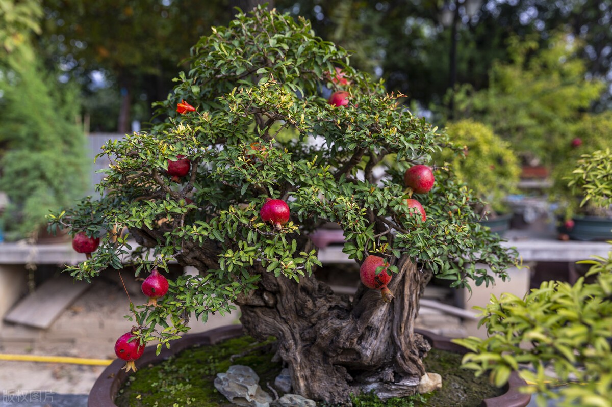 用田园土时,注意不要挖取盐碱量比较高的原土,并且最好在盆底也添些腐熟的禽畜粪肥或麻饼豆渣,或者鸡毛鸭肠等。这些东西都可以为石榴提供充足的养分,让花开的更繁,果子结的更大更多。当然了,也可在不同生长阶段施以不同种类的化肥(生长期以氮钾肥为主,花期前以磷肥为主),只是现在大多数化肥对土壤有比较明显的结构危害作用,长期使用的话,会令土壤板结硬化,自然对植株根部的生长是不利的。