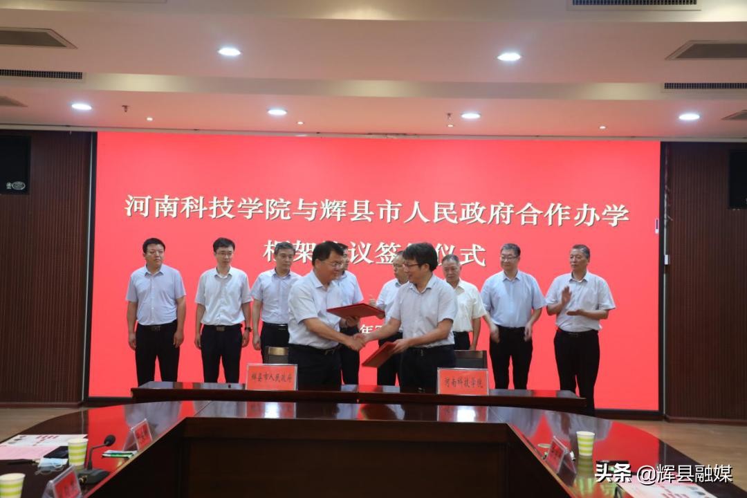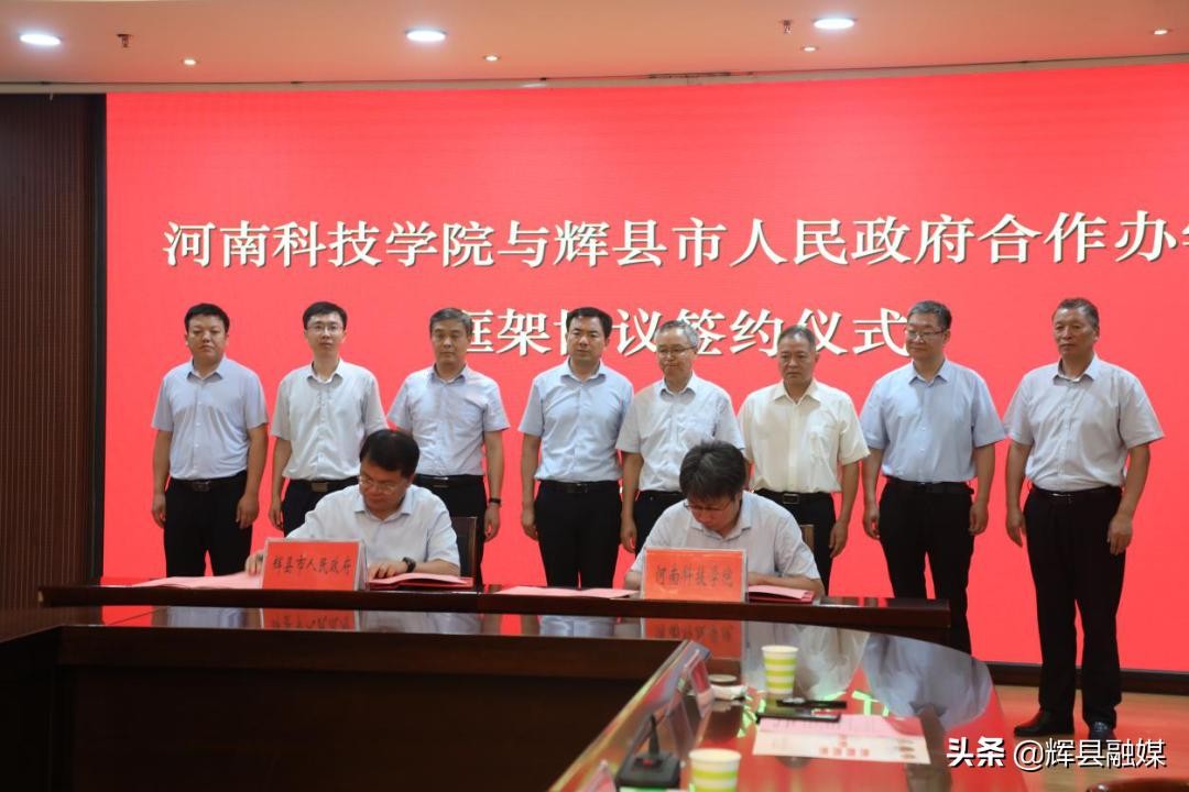 7月9日,河南科技学院与辉县市人民政府合作办学框架协议签约仪式在河南科技学院举行。