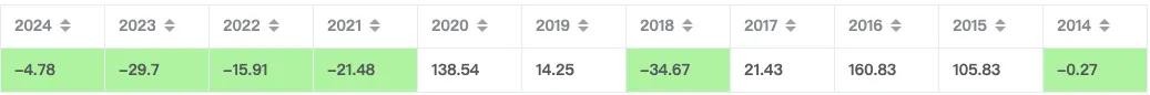 伴随ROE的连续下跌,股价也连续下跌了四年。
