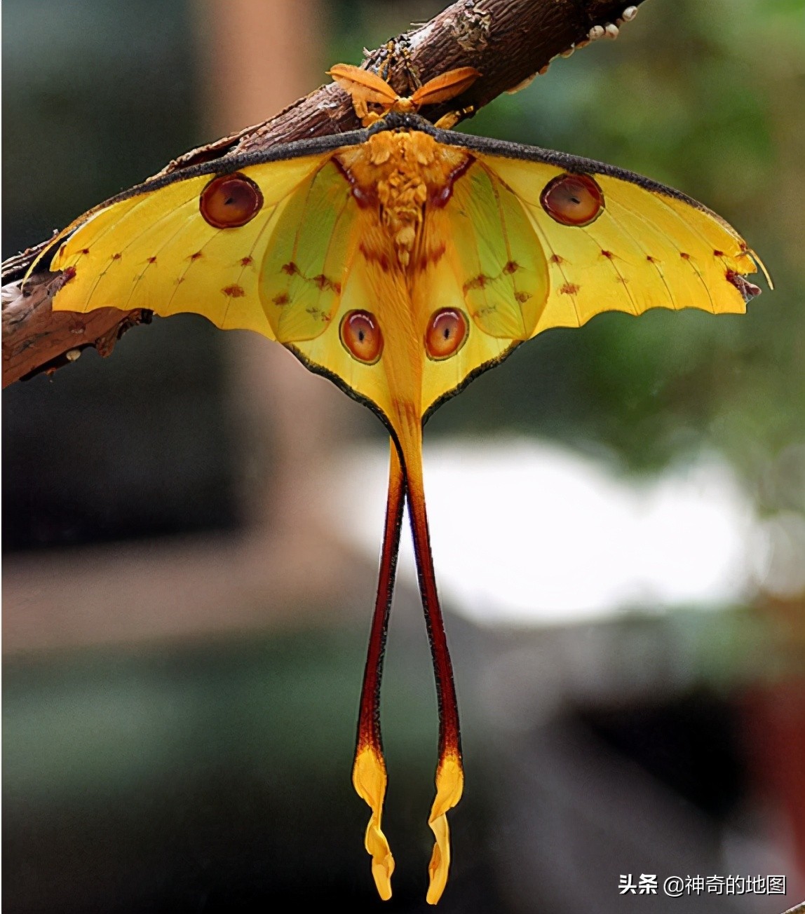 说起岛上的自然环境,要先从一种昆虫说起,马达加斯加的热带雨林有一种飞蛾,是世界上最大的丝绸飞蛾之一。这种美丽的蛾被称为长尾月亮蛾。其最吸引人的特征就是是它的长红尾长达15厘米。不仅是长尾,月亮蛾的翼展也很大,超过20厘米。加上带有黑色边框的彩黄色的前翅和后翅,整个飞蛾非常漂亮。