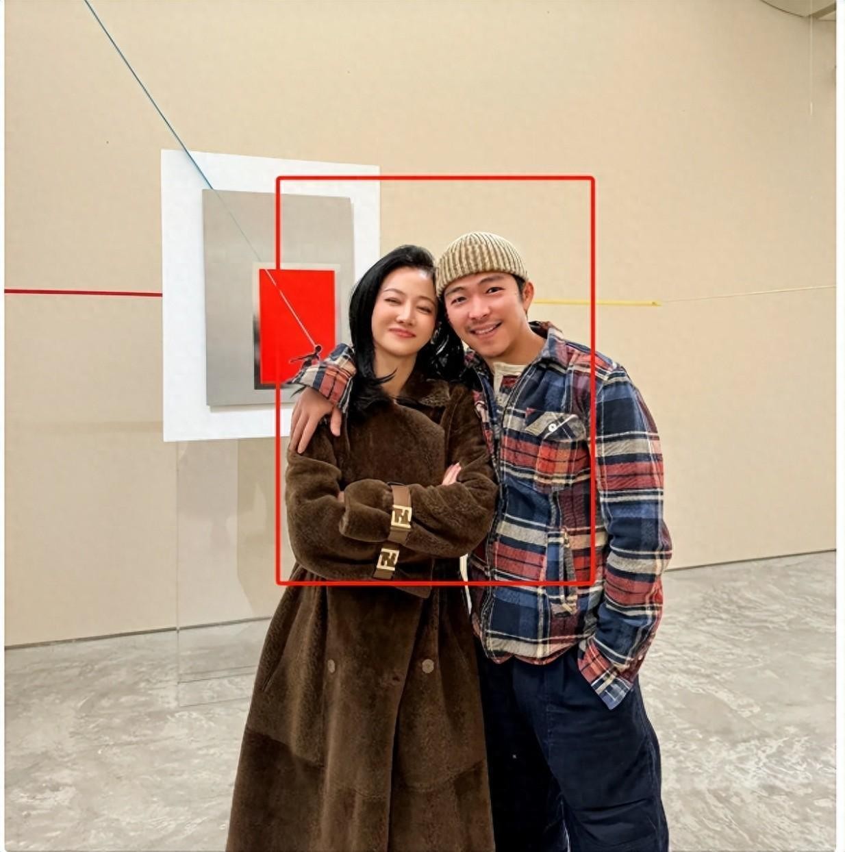 而章宇在照片中也显得轻松自如,他穿了一身格格的休闲上衣和黑色的裤子,头上也戴着御寒的帽子,然后就把头往左一歪,紧紧贴着谭卓的头,表明了要和谭卓永远在一起。