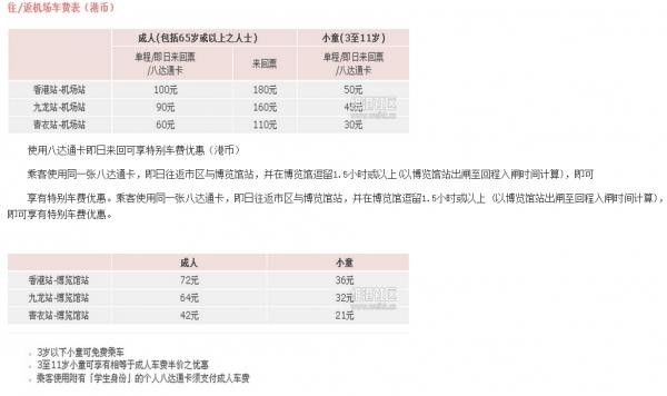 机场快线单程票:青衣站60港币;九龙站90港币;香港站100港币(一直都没用弄明白,机场快线的优势在哪里,除了贵还是贵)