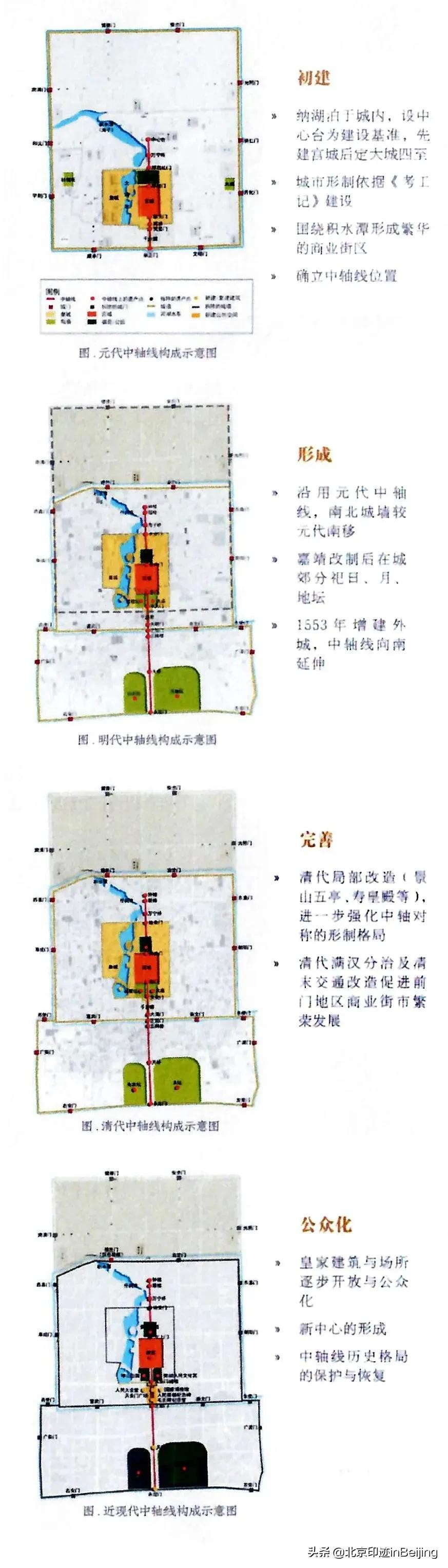 北京中轴线自元大都始建,至今经历了四个主要发展阶段: