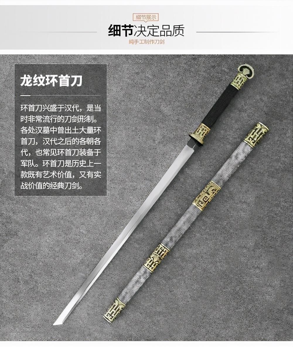 环首刀,刀如其名,是指在刀柄处带有一个金属铁环,故名环首刀。
