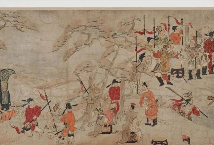 馆藏于波士顿美术馆的《吉备大臣入唐绘卷》,绘制于12世纪日本平安时代,描绘了遣唐使吉备真备入唐的故事,从画中可见,有三尖两刃状的长柄战刀,可能就是唐陌刀。