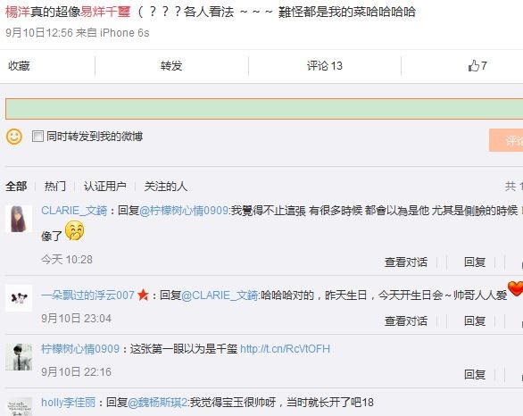 易烊千玺撞脸杨洋神相似 看网友是怎么回复的