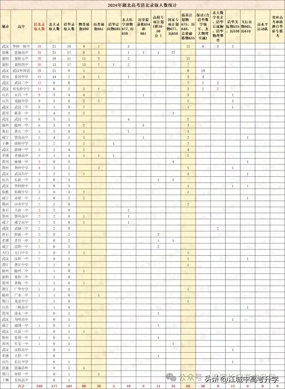2024湖北清北录取全省高中排名出炉,强基保送与裸考人数势均力敌